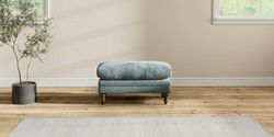 6.12.1 Buy Hutton Deep Relaxed Sit Footstool Chunky Chenille Light Teal Green High Turned - Mid from the Laura Ashley online shop Click here to use our website with more accessibility support, for example screen readers