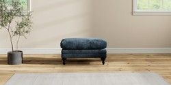 6.12.1 Buy Hutton Deep Relaxed Sit Footstool Distressed Velour Midnight Blue High Turned - Dark from the Laura Ashley online shop Click here to use our website with more accessibility support, for example screen readers