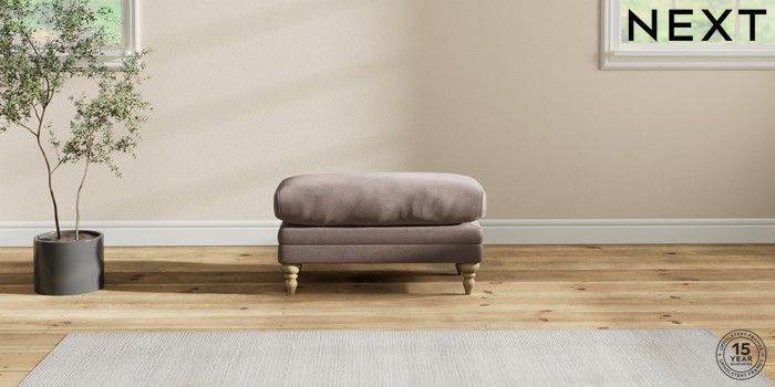 6.12.1 Buy Hutton Deep Relaxed Sit Footstool Luxe Chenille Mink Brown High Turned - Light from the Laura Ashley online shop Click here to use our website with more accessibility support, for example screen readers