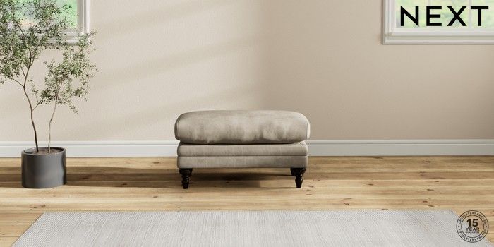 6.12.1 Buy Hutton Deep Relaxed Sit Footstool Monza Faux Leather Easy Clean Mink Brown High Turned - Dark from the Laura Ashley online shop Click here to use our website with more accessibility support, for example screen readers