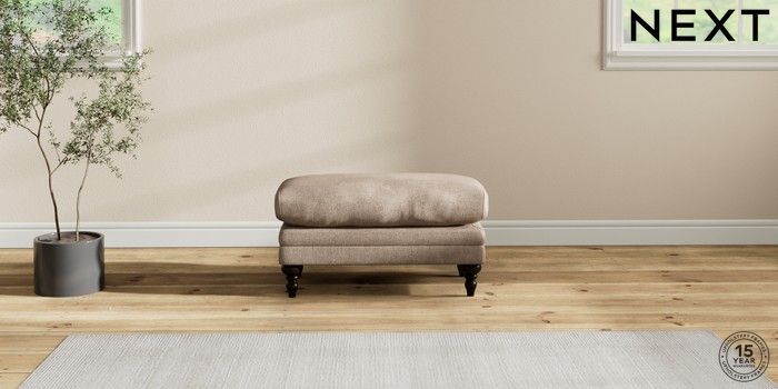 6.12.1 Buy Hutton Deep Relaxed Sit Footstool Plush Chenille Mid Natural High Turned - Dark from the Laura Ashley online shop Click here to use our website with more accessibility support, for example screen readers