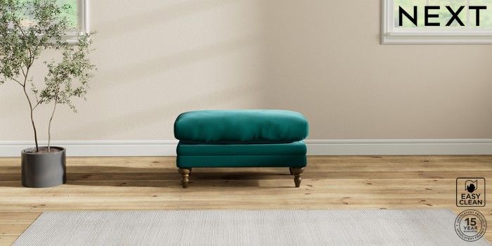 6.12.1 Buy Hutton Deep Relaxed Sit Footstool Plush Velvet Easy Clean Juniper Green High Turned - Mid from the Laura Ashley online shop Click here to use our website with more accessibility support, for example screen readers