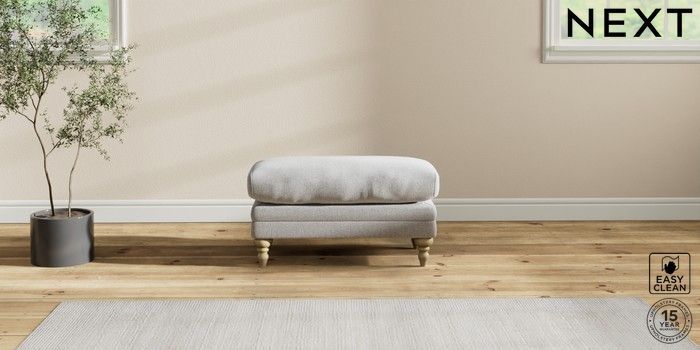 6.12.1 Buy Hutton Deep Relaxed Sit Footstool Tweedy Blend Easy Clean Light Silver Grey High Turned - Light from the Laura Ashley online shop Click here to use our website with more accessibility support, for example screen readers
