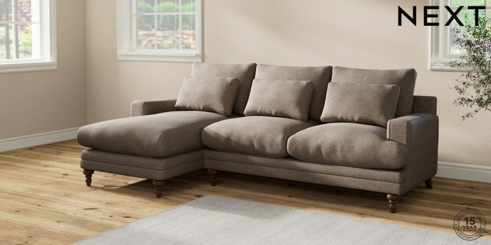 6.12.1 Buy Hutton Deep Relaxed Sit Medium Sofa Chaise - Left Hand Chunky Weave Dark Natural Country Turned - Mid from the Laura Ashley online shop Click here to use our website with more accessibility support, for example screen readers