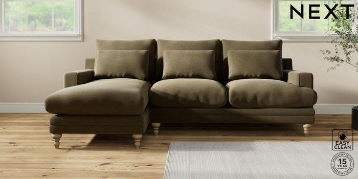 7.0.3 Buy Hutton Deep Relaxed Sit Medium Sofa Chaise - Left Hand Fine Chenille Easy Clean Dark Moss Green Country Turned - Light from the Laura Ashley online shop Click here to use our website with more accessibility support, for example screen readers