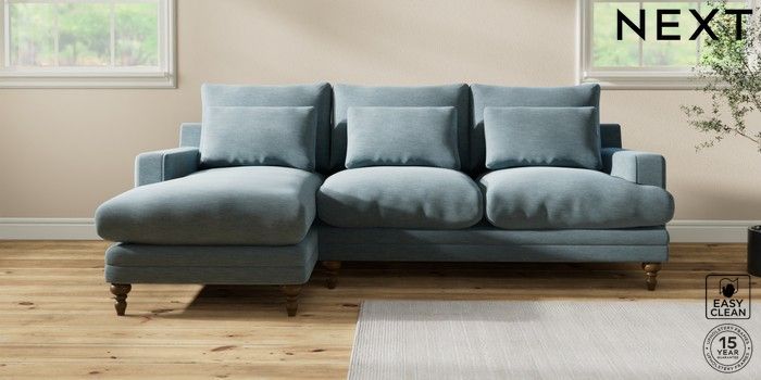 7.0.3 Buy Hutton Deep Relaxed Sit Medium Sofa Chaise - Left Hand Fine Chenille Easy Clean Mid Blue Country Turned - Mid from the Laura Ashley online shop Click here to use our website with more accessibility support, for example screen readers