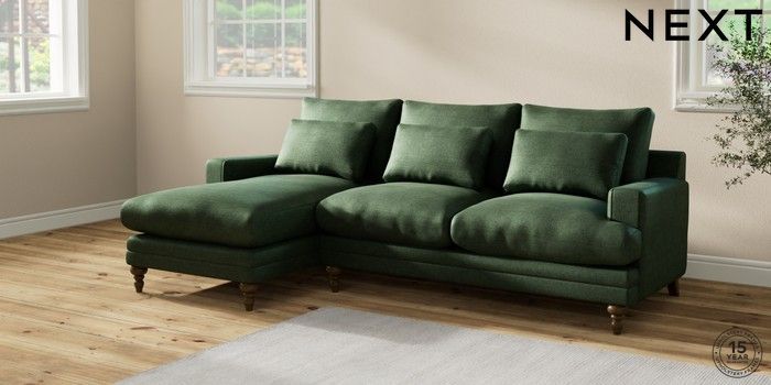 6.12.1 Buy Hutton Deep Relaxed Sit Medium Sofa Chaise - Left Hand Luxe Chenille Dark Green Country Turned - Mid from the Laura Ashley online shop Click here to use our website with more accessibility support, for example screen readers
