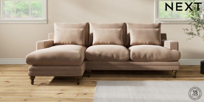 7.0.3 Buy Hutton Deep Relaxed Sit Medium Sofa Chaise - Left Hand Luxe Chenille Mid Natural Country Turned - Mid from the Laura Ashley online shop Click here to use our website with more accessibility support, for example screen readers