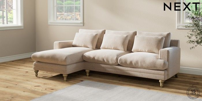 7.2.6 Buy Hutton Deep Relaxed Sit Medium Sofa Chaise - Left Hand Multi Weave Mid Natural Country Turned - Light from the Laura Ashley online shop Click here to use our website with more accessibility support, for example screen readers