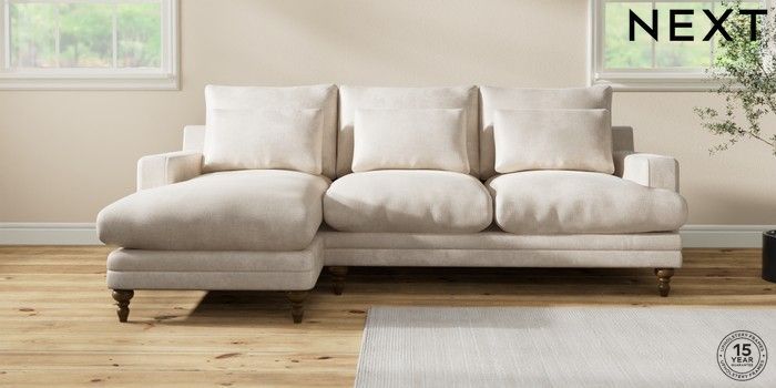 7.0.3 Buy Hutton Deep Relaxed Sit Medium Sofa Chaise - Left Hand Plush Chenille Oyster Country Turned - Mid from the Laura Ashley online shop Click here to use our website with more accessibility support, for example screen readers