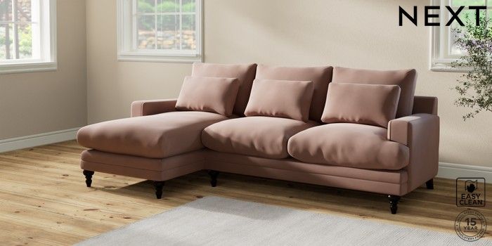 6.12.1 Buy Hutton Deep Relaxed Sit Medium Sofa Chaise - Left Hand Plush Velvet Easy Clean Mid Natural Country Turned - Dark from the Laura Ashley online shop Click here to use our website with more accessibility support, for example screen readers