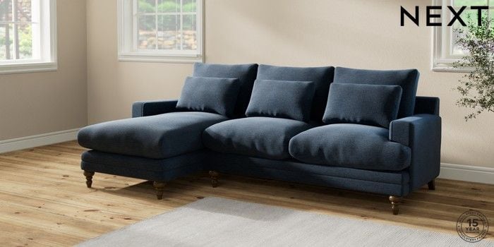 6.12.1 Buy Hutton Deep Relaxed Sit Medium Sofa Chaise - Left Hand Ripple Chenille Dark Blue Country Turned - Mid from the Laura Ashley online shop Click here to use our website with more accessibility support, for example screen readers
