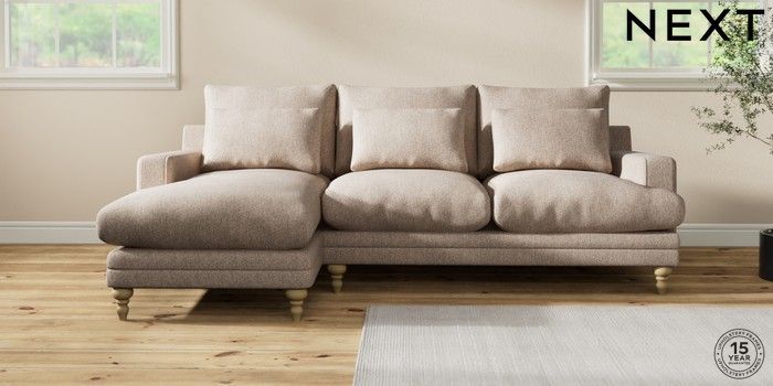 7.0.3 Buy Hutton Deep Relaxed Sit Medium Sofa Chaise - Left Hand Tweedy Chenille Mid Natural Country Turned - Light from the Laura Ashley online shop Click here to use our website with more accessibility support, for example screen readers