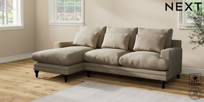 6.12.1 Buy Hutton Deep Relaxed Sit Medium Sofa Chaise - Left Hand Woven Chenille Easy Clean Mid Natural Country Turned - Dark from the Laura Ashley online shop Click here to use our website with more accessibility support, for example screen readers