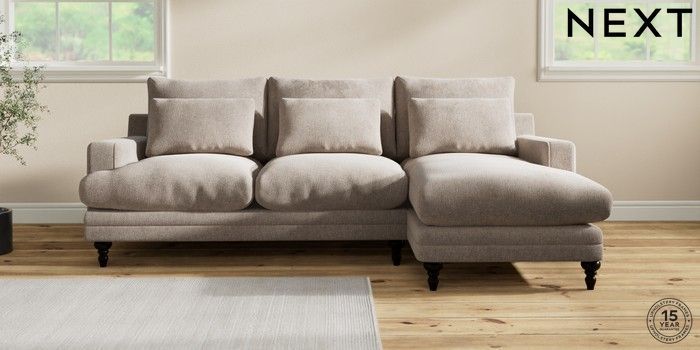 7.0.3 Buy Hutton Deep Relaxed Sit Medium Sofa Chaise - Right Hand Chunky Chenille Light Dove Country Turned - Dark from the Laura Ashley online shop Click here to use our website with more accessibility support, for example screen readers