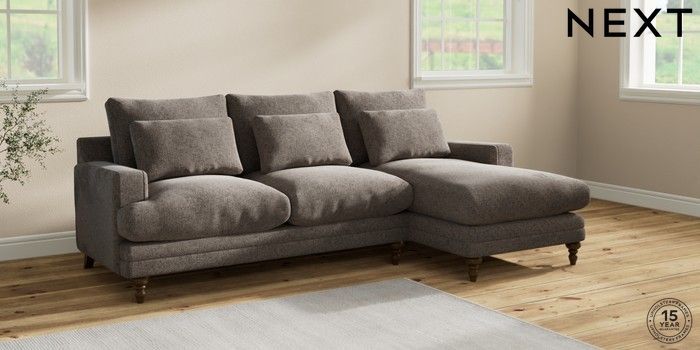 6.12.1 Buy Hutton Deep Relaxed Sit Medium Sofa Chaise - Right Hand Chunky Chenille Mink Brown Country Turned - Mid from the Laura Ashley online shop Click here to use our website with more accessibility support, for example screen readers