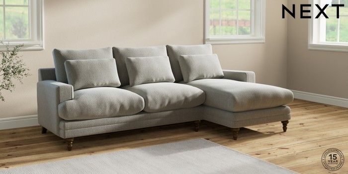 6.12.1 Buy Hutton Deep Relaxed Sit Medium Sofa Chaise - Right Hand Chunky Texture Dove Country Turned - Mid from the Laura Ashley online shop Click here to use our website with more accessibility support, for example screen readers