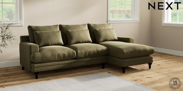 6.12.1 Buy Hutton Deep Relaxed Sit Medium Sofa Chaise - Right Hand Cotswold Chenille Dark Green Country Turned - Dark from the Laura Ashley online shop Click here to use our website with more accessibility support, for example screen readers
