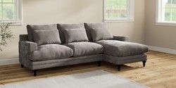 6.12.1 Buy Hutton Deep Relaxed Sit Medium Sofa Chaise - Right Hand Distressed Velour French Grey Country Turned - Dark from the Laura Ashley online shop Click here to use our website with more accessibility support, for example screen readers