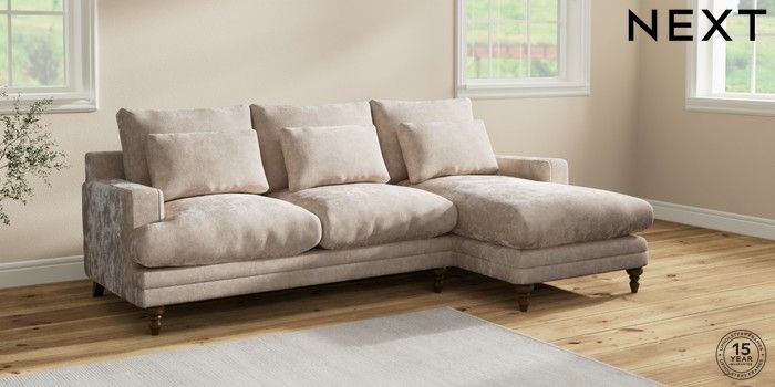 6.12.1 Buy Hutton Deep Relaxed Sit Medium Sofa Chaise - Right Hand Distressed Velour Mid Natural Country Turned - Mid from the Laura Ashley online shop Click here to use our website with more accessibility support, for example screen readers
