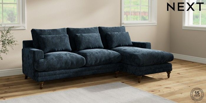 6.12.1 Buy Hutton Deep Relaxed Sit Medium Sofa Chaise - Right Hand Distressed Velour Midnight Blue Country Turned - Mid from the Laura Ashley online shop Click here to use our website with more accessibility support, for example screen readers