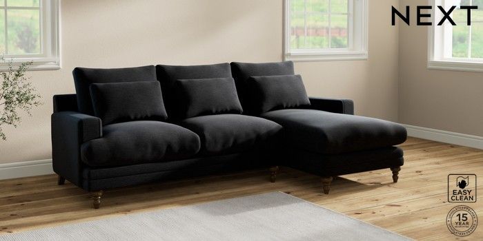 6.12.1 Buy Hutton Deep Relaxed Sit Medium Sofa Chaise - Right Hand Fine Chenille Easy Clean Black Country Turned - Mid from the Laura Ashley online shop Click here to use our website with more accessibility support, for example screen readers