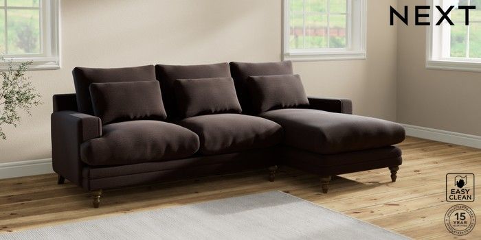 6.12.1 Buy Hutton Deep Relaxed Sit Medium Sofa Chaise - Right Hand Fine Chenille Easy Clean Chocolate Brown Country Turned - Mid from the Laura Ashley online shop Click here to use our website with more accessibility support, for example screen readers