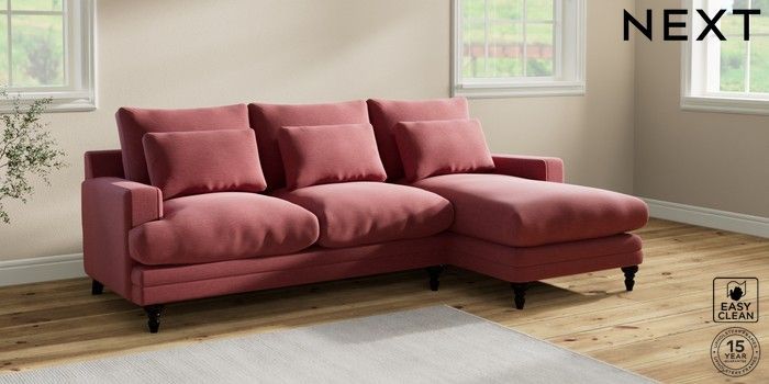 6.12.1 Buy Hutton Deep Relaxed Sit Medium Sofa Chaise - Right Hand Fine Chenille Easy Clean Mid Pink Country Turned - Dark from the Laura Ashley online shop Click here to use our website with more accessibility support, for example screen readers