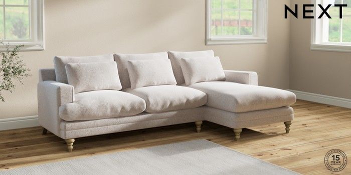 7.2.6 Buy Hutton Deep Relaxed Sit Medium Sofa Chaise - Right Hand Multi Weave Oyster Country Turned - Light from the Laura Ashley online shop Click here to use our website with more accessibility support, for example screen readers