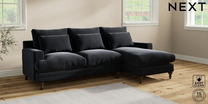 6.12.1 Buy Hutton Deep Relaxed Sit Medium Sofa Chaise - Right Hand Plush Velvet Easy Clean Charcoal Grey Country Turned - Mid from the Laura Ashley online shop Click here to use our website with more accessibility support, for example screen readers
