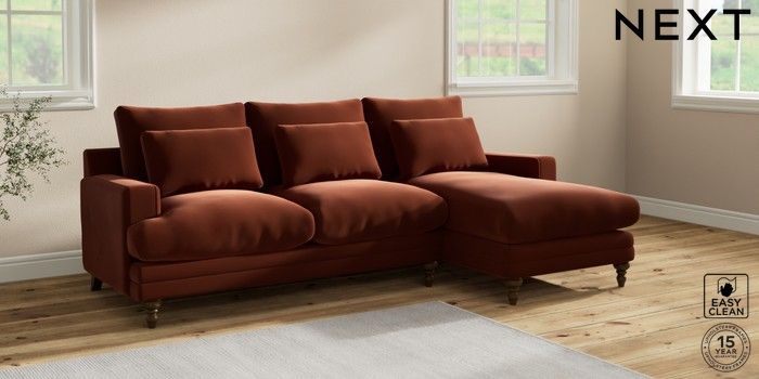 6.12.1 Buy Hutton Deep Relaxed Sit Medium Sofa Chaise - Right Hand Plush Velvet Easy Clean Ginger Orange Country Turned - Mid from the Laura Ashley online shop Click here to use our website with more accessibility support, for example screen readers