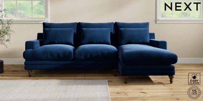 7.0.3 Buy Hutton Deep Relaxed Sit Medium Sofa Chaise - Right Hand Plush Velvet Easy Clean Navy Blue Country Turned - Mid from the Laura Ashley online shop Click here to use our website with more accessibility support, for example screen readers