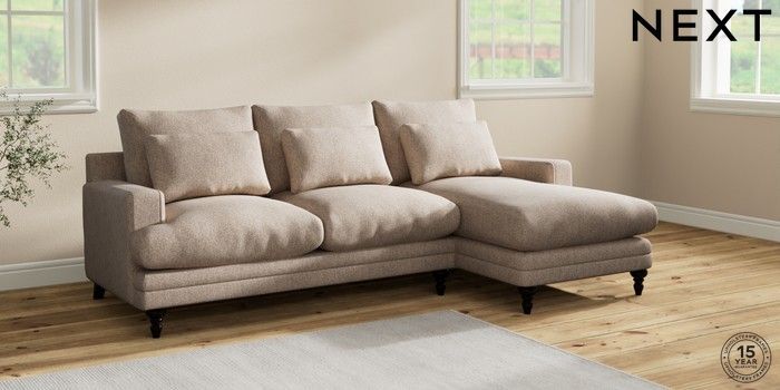 6.12.1 Buy Hutton Deep Relaxed Sit Medium Sofa Chaise - Right Hand Tweedy Chenille Mid Natural Country Turned - Dark from the Laura Ashley online shop Click here to use our website with more accessibility support, for example screen readers