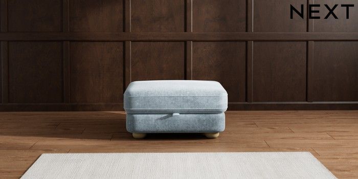 7.2.6 Buy Jasmine Storage Footstool Plush Chenille Light Blue Large Bun - Light from the Laura Ashley online shop Click here to use our website with more accessibility support, for example screen readers