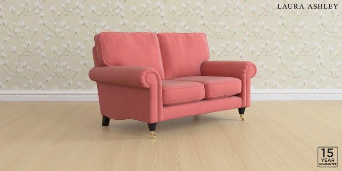 6.12.1 Buy Kingston by Laura Ashley 2 Seater Small Sofa Ailsworth Old Rose Pink Low Brass Castor - Black from the Laura Ashley online shop Click here to use our website with more accessibility support, for example screen readers
