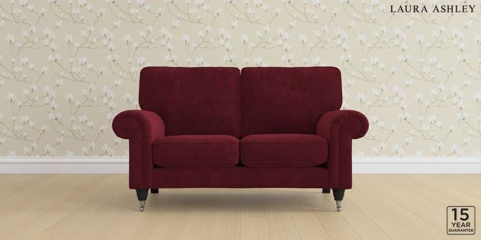 6.12.13 Buy Kingston by Laura Ashley 2 Seater Small Sofa Alwyn Velvet Burgundy Red Low Chrome Castor - Black from the Laura Ashley online shop Click here to use our website with more accessibility support, for example screen readers