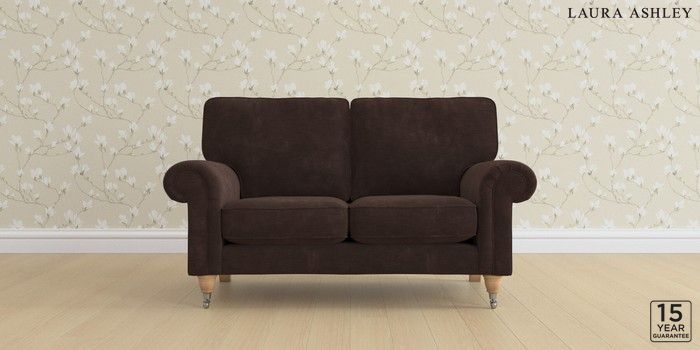 6.12.1 Buy Kingston by Laura Ashley 2 Seater Small Sofa Alwyn Velvet Chocolate Brown Low Chrome Castor - Light Oak from the Laura Ashley online shop Click here to use our website with more accessibility support, for example screen readers