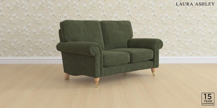 6.12.1 Buy Kingston by Laura Ashley 2 Seater Small Sofa Alwyn Velvet Ivy Green Low Brass Castor - Light Oak from the Laura Ashley online shop Click here to use our website with more accessibility support, for example screen readers