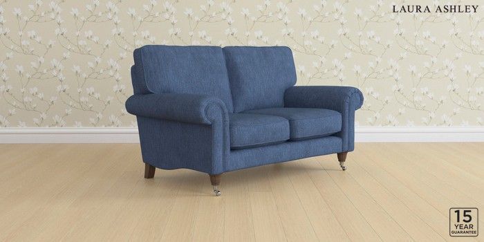 6.12.1 Buy Kingston by Laura Ashley 2 Seater Small Sofa Bainton Midnight Navy Low Chrome Castor - Chestnut from the Laura Ashley online shop Click here to use our website with more accessibility support, for example screen readers
