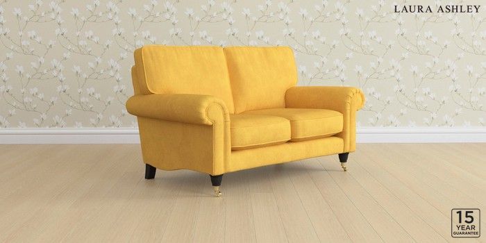 6.12.1 Buy Kingston by Laura Ashley 2 Seater Small Sofa Bainton Ochre Yellow Low Brass Castor - Black from the Laura Ashley online shop Click here to use our website with more accessibility support, for example screen readers