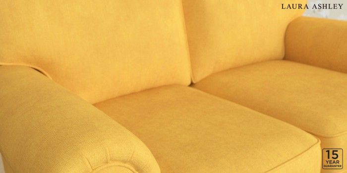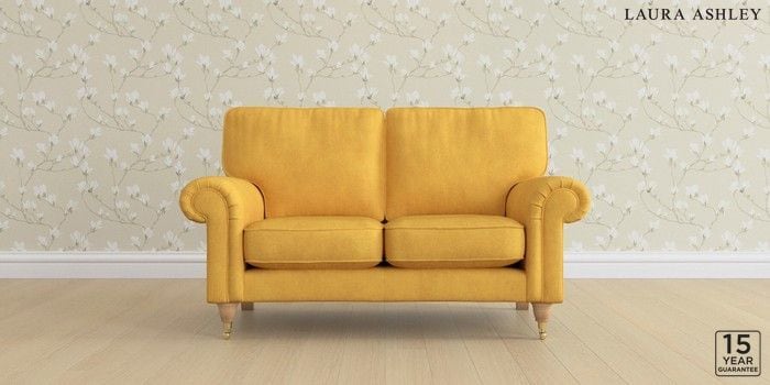 6.12.1 Buy Kingston by Laura Ashley 2 Seater Small Sofa Bainton Ochre Yellow Low Brass Castor - Light Oak from the Laura Ashley online shop Click here to use our website with more accessibility support, for example screen readers