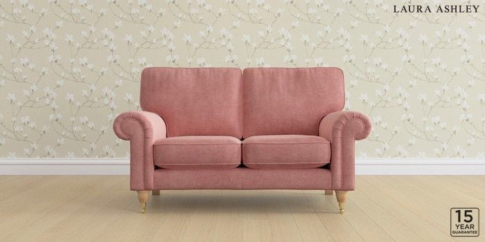 6.12.1 Buy Kingston by Laura Ashley 2 Seater Small Sofa Bainton Old Rose Pink Low Brass Castor - Light Oak from the Laura Ashley online shop Click here to use our website with more accessibility support, for example screen readers
