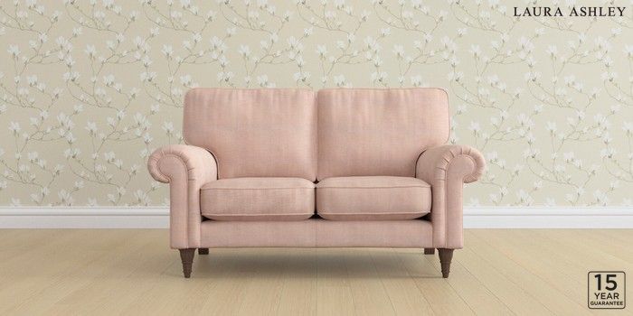 6.12.1 Buy Kingston by Laura Ashley 2 Seater Small Sofa Edwin Chenille Blush Pink Low Turned - Chestnut from the Laura Ashley online shop Click here to use our website with more accessibility support, for example screen readers