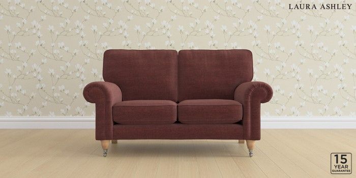 6.12.13 Buy Kingston by Laura Ashley 2 Seater Small Sofa Edwin Chenille Burgundy Red Low Chrome Castor - Light Oak from the Laura Ashley online shop Click here to use our website with more accessibility support, for example screen readers