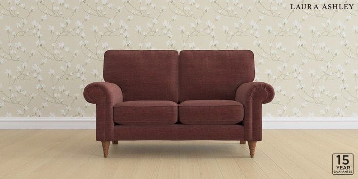 6.12.1 Buy Kingston by Laura Ashley 2 Seater Small Sofa Edwin Chenille Burgundy Red Low Turned - Teak from the Laura Ashley online shop Click here to use our website with more accessibility support, for example screen readers