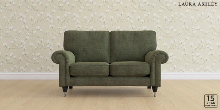 6.12.1 Buy Kingston by Laura Ashley 2 Seater Small Sofa Edwin Chenille Hedgerow Green Low Chrome Castor - Black from the Laura Ashley online shop Click here to use our website with more accessibility support, for example screen readers