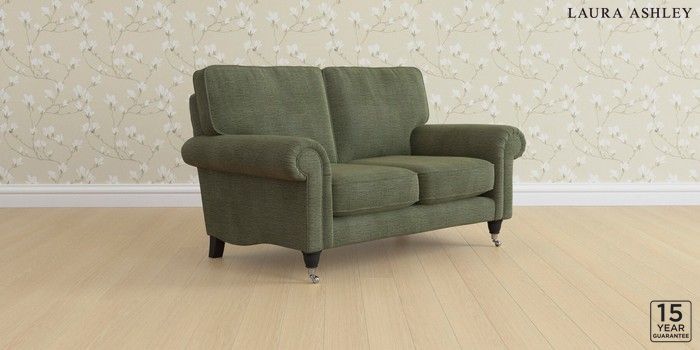 6.12.13 Buy Kingston by Laura Ashley 2 Seater Small Sofa Edwin Chenille Hedgerow Green Low Chrome Castor - Black from the Laura Ashley online shop Click here to use our website with more accessibility support, for example screen readers