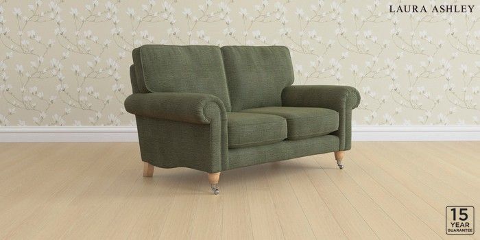 6.12.1 Buy Kingston by Laura Ashley 2 Seater Small Sofa Edwin Chenille Hedgerow Green Low Chrome Castor - Light Oak from the Laura Ashley online shop Click here to use our website with more accessibility support, for example screen readers
