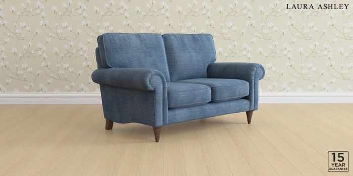 6.12.1 Buy Kingston by Laura Ashley 2 Seater Small Sofa Edwin Chenille Seaspray Blue Low Turned - Chestnut from the Laura Ashley online shop Click here to use our website with more accessibility support, for example screen readers