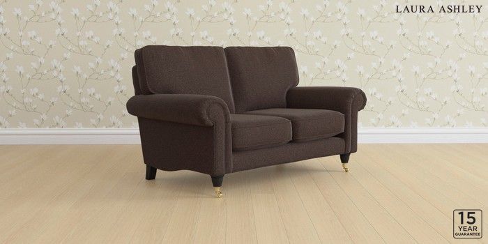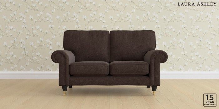 6.12.13 Buy Kingston by Laura Ashley 2 Seater Small Sofa Harley Chestnut Brown Low Brass Castor - Black from the Laura Ashley online shop Click here to use our website with more accessibility support, for example screen readers
